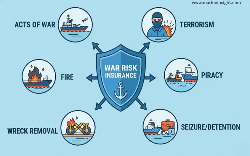 With vessels increasingly operating through high-risk regions, this form of insurance has become particularly relevant. Coverage may extend to physical damage, seizure, detention, and certain ransom-related losses, subject to strict policy conditions and exclusions.