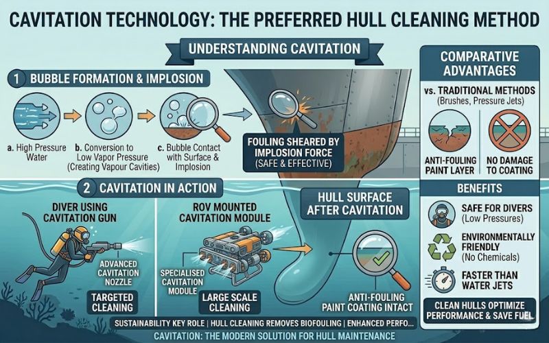 Underwater Ship Hull Cleaning: Techniques, ROVs, & Cavitation Technology